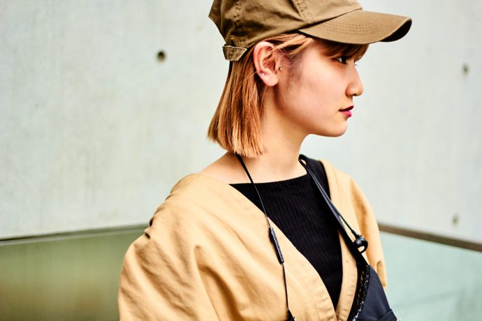 美容師のユキナさん(20歳)。トレンチコート×キャップでカジュアルに仕上げたのが本日のポイントとのこと。短めに斜め掛けしたウエストポーチも◎。