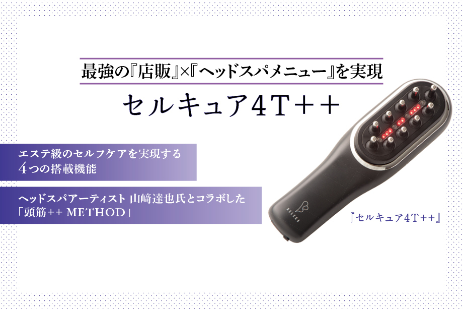 “頭筋++”を新しいヘッドスパメニューとしてラインアップしよう。お客さまも「セルキュア4T++」の能力と機能を実感。