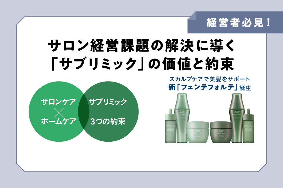 サブリミックとは、スタッフもお客さまも仕上がりの違いを即実感できるヘア&スカルプケアブランドであり、「スタッフ育成」「集客」「生産性」など、美容室経営の長年の課題を解決に導く存在でもある。その理由をひも解いていこう。