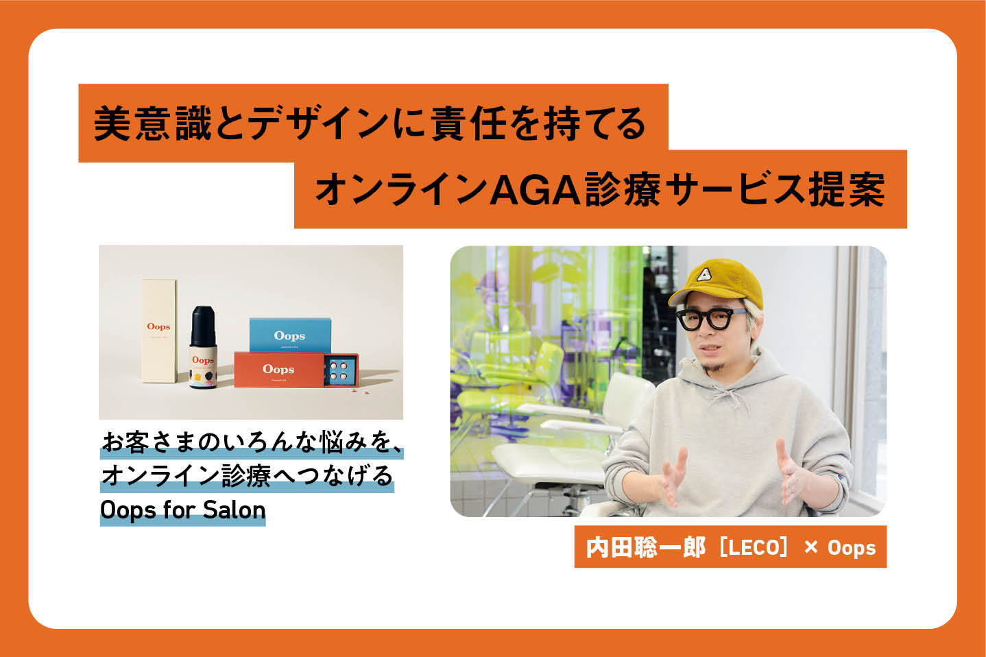 ![美意識とデザインに責任を持てるオンラインAGA診療サービス提案/内田聡一郎[LECO]×Oops 3 Oops for Salonサービス紹介画像](https://hairmode.jp/wp-content/uploads/P25_Oops_TU_01_2.jpg)